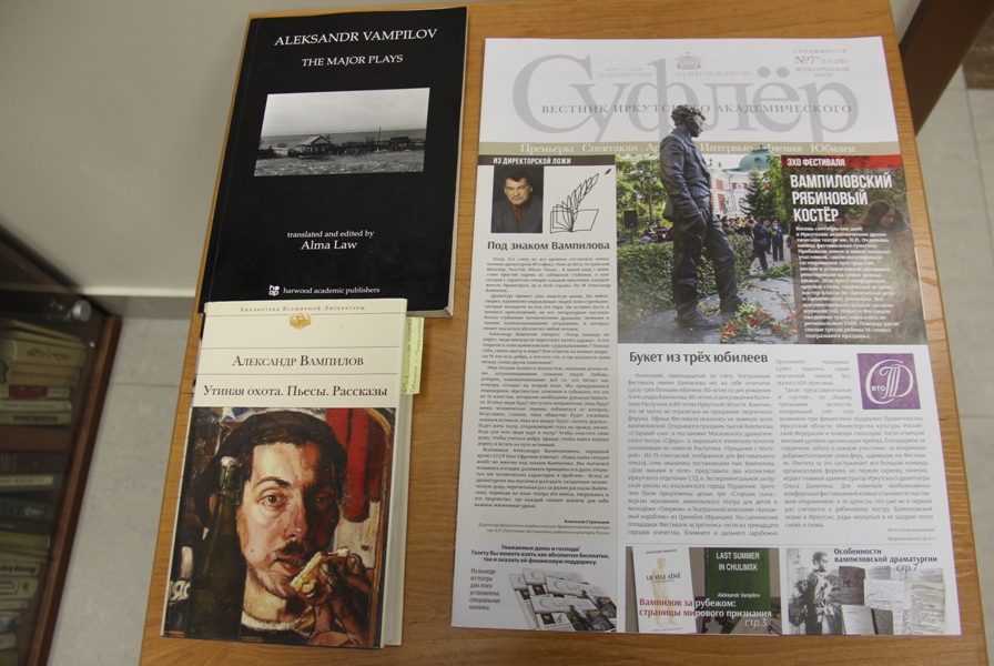 Фотоотчет Анатолия Бызова. Свежий 7(21) номер вестника Иркутского академического театра им. Н.П. Охлопкова «Суфлёр» полностью посвящён Александру Валентиновичу Вампилову. В нём опубликованы и статьи научных сотрудников нашего Центра. Екатерина Фалалеева в своём материале рассказывает о постановках и специфике прочтения творчества драматурга за рубежом. Дмитрий Суров размышляет о структуре пьес Александра Вампилова и особенностях его драматургии. Тем, кто любит театр и творчество нашего выдающегося земляка, будет интересно познакомиться с новым выпуском «Суфлёра».