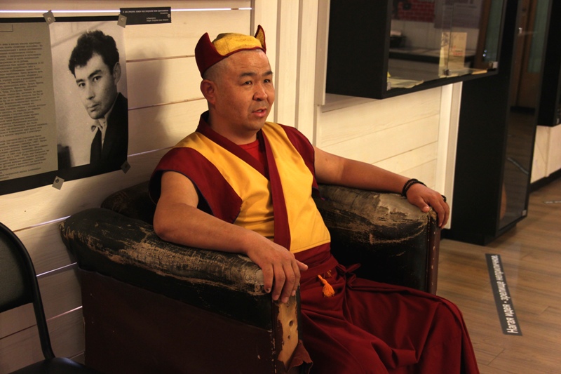 Необычный гость появился вчера в Центре Александра Вампилова. Ширээтэ лама старейшего в Иркутской области Аларского дацана Шираб лама приехал не только для того, чтобы осмотреть экспозицию, но и увидеть зал Литературно-театрального салона, где в июне будет дан старт марафону по сбору средств на восстановление дацана в посёлке Кутулик.