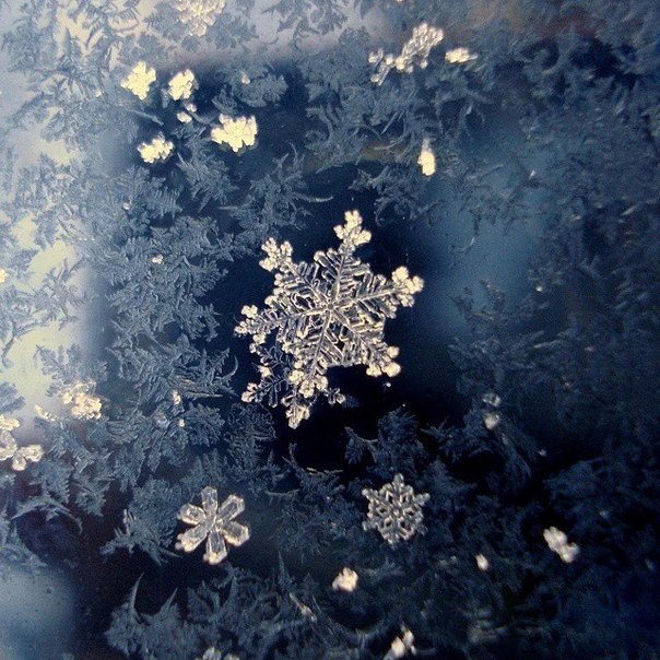 Снежинка села на стекло.