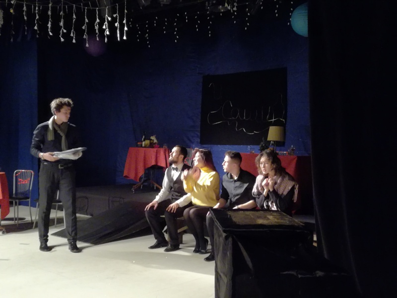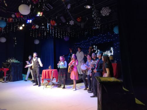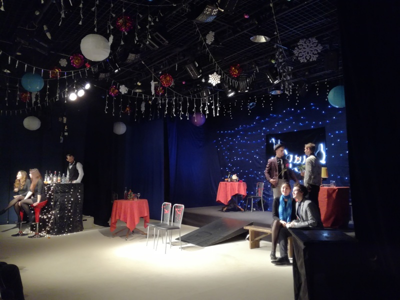 Фотоотчет Анатолия Бызова. 8 января Лаборатория кино, театра и ТВ «MediaHouse» превратила камерную сцену Молодёжного театра города Уфы в бар «У Саши». Именно так именуется основное место действия в постановке «Рассказы Вампилова». Название заведения отражает суть спектакля – зрители словно находились в гостях у Александра Вампилова, произведения которого на сцене объединили режиссёры Наиль Сафин и Ольга Лукьянова. «В прошлом году спектакль прошёл с аншлагом. По многочисленным просьбам зрителей мы решили повторить свой успех и сыграть понравившуюся всем картину, но в новом формате новогодней атмосферы. Хочется выразить огромную благодарность Национальному молодежному театру имени Мустая Карима за то, что они всегда поддерживают нас», – говорит Радмила Давлетшина, руководитель проекта. Начинающие актеры с творческим энтузиазмом обыграли трогательные истории по рассказам Александра Вампилова. Зрители увидели на сцене и комичные образы, и любовные мотивы, и лирические ноты. Все постановки объединяла живая, неподдельная игра молодых исполнителей, отчего и создавался эффект причастности зрителей ко всему происходящему на сцене. Материал сайта: http://ufacity.info