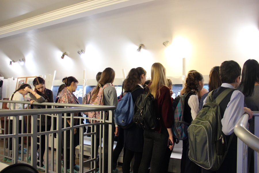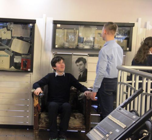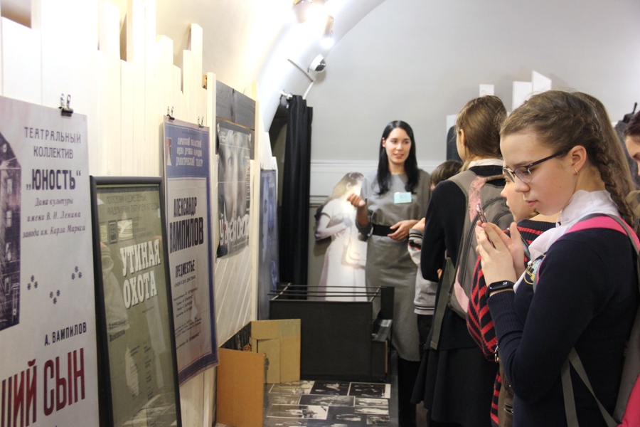 Фотоотчет Анатолия Бызова. Порой ученикам школы может казаться, что изучаемый материал можно просто прочитать, рассказать на уроке и забыть. Но, согласитесь, вряд ли такой подход к литературе возможен, когда учитель вместе со своими ребятами отправляется на выездной урок-знакомство с классиками, рождёнными на земле Иркутской области (Александром Вампиловым и Валентином Распутиным). Невольно, прочитанное воспринимается глубже и, стоящий за произведением автор, обретают плоть и кровь, предстаёт живым человеком со своими страстями и слабостями, любовью и силой. Такой интересный выездной урок вчера случился у учеников средней общеобразовательной школы № 57. В Литературно-театральном салоне они послушали лекцию директора Центра Галины Солуяновой «Слово о Вампилове», в которой она живо и ярко рассказала о судьбе, творчестве и характере драматурга. Также Галина Анатольевна всегда поднимает тему нравственности, воспитания своей души и вкуса. Но и в такой серьёзной теме не обходится без причины для улыбки. На её вопрос: «Какую музыку вы слушаете?». После – ученики познакомились с экспозицией «На антресолях»: посмотрели личные вещи Александра Вампилова, посидели в легендарном кресле из редакции «Советская молодёжь», которое, мы верим, напитывает творческой энергией сидящего в нём (ребята шутили, что так готовятся к сочинению). А также осмотрели Картинную галерею и библиотеку Центра. Было очень приятно, что нас посетили вдумчивые и такие светлые семиклассники, надеемся, что для них Александр Вампилов стал добрым знакомым, а не скучным, из прошлого века, литератором! По крайней мере, нам так показалось.