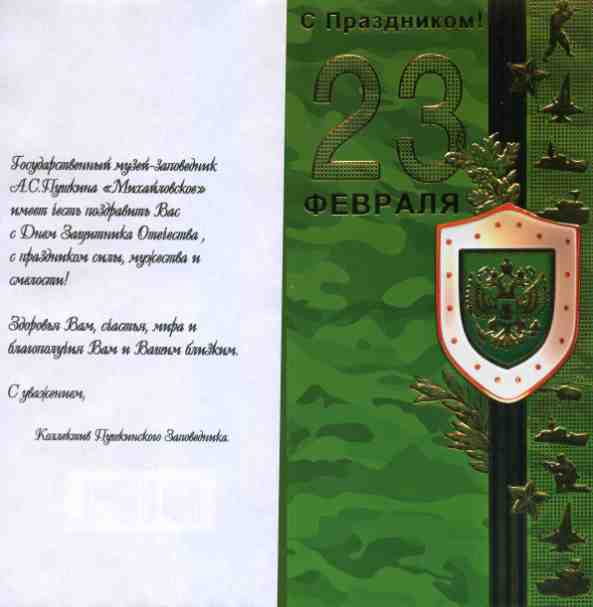 Поздравление от Пушкинского Заповедника с 23 февраля