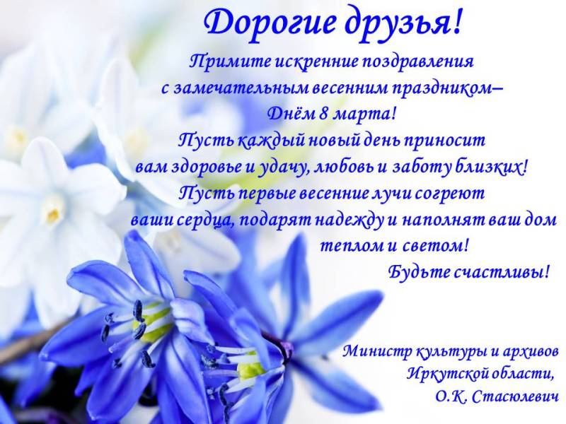 Международный женский день позади, однако, тепло от поздравлений, полученных со всех уголков России, продолжает вызывать радостную улыбку! От доброго слова расцветаешь, и на душе становится светлей, когда получаешь поздравления от коллег и друзей, с которыми повезло встретиться на жизненном пути!