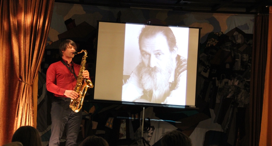 В своих работах Анатолий Погребной многократно обращается к образам музыкальных инструментов: фортепиано и саксофон, так что они просто не могли не прозвучать на вечере! И студенты Иркутского областного музыкального колледжа им. Ф.Шопена Виктория Семёнова и Иван Константинов наполнили стены Дома драматурга музыкой инструментов, столь любимых героем нашего события.