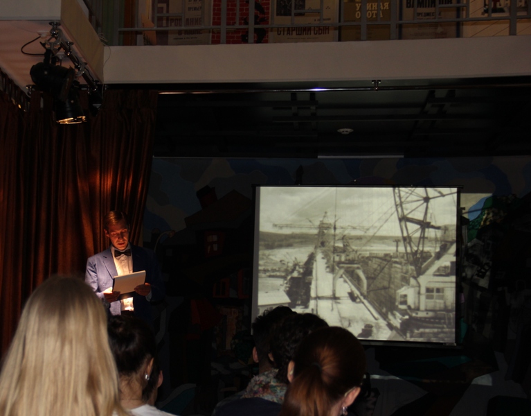Актёрский дуэт Инны Королёвой и Сергея Павлова порой игриво, порой  лирично рассказали о годах ударных строек, о том, как из проекта молодых ленинградских архитекторов по теме «Город моей мечты» возник план постройки большого города у рукотворного моря с очагами нетронутого леса внутри кварталов. Вспомнили, как эта дерзкая и романтичная идея позвала молодых людей со всей страны за собой в Сибирскую тайгу! Старые фотографии города, стихи и музыка настроили гостей вечера на ностальгический лад. Прозвучал отрывок из очерка Александра Вампилова «Билет на Усть-Илим».