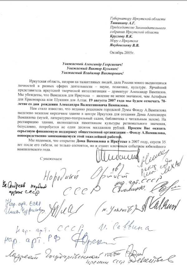 — Литературный маршрут по  Вампиловским местам в Иркутске