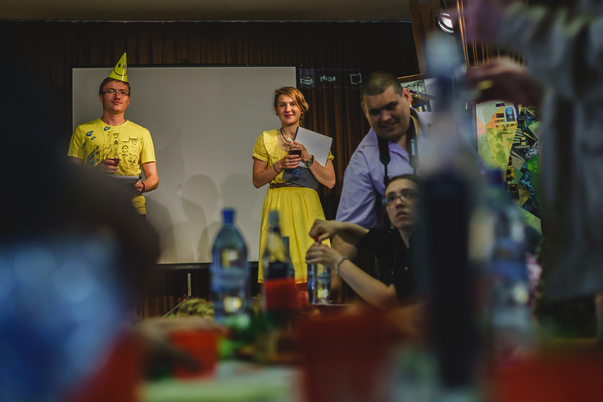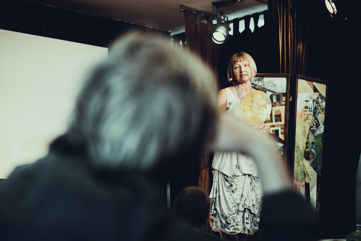 Следующее «Свидание» получилось контрастно лёгким и весёлым. Открытие выставки художника-дизайнера Владимира Дейкуна «ATRКРЫТКА» было совмещено с празднованием третьего дня летнего солнцестояния. Мы говорили о любимых праздниках, рассматривали открытки, которые художник рисовал для своих друзей, произносили тосты и дарили подарки. Радостный жёлтый цвет и свет преобладал в одеждах, оформлении и, надеемся, в настроении присутствующих.