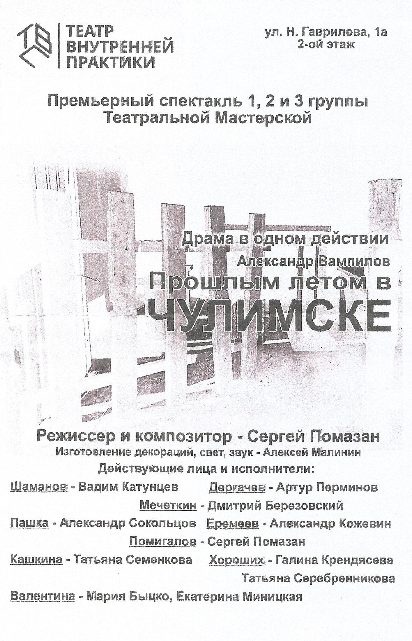 «Прошлым летом в Чулимске» в Театре Внутренней Практики