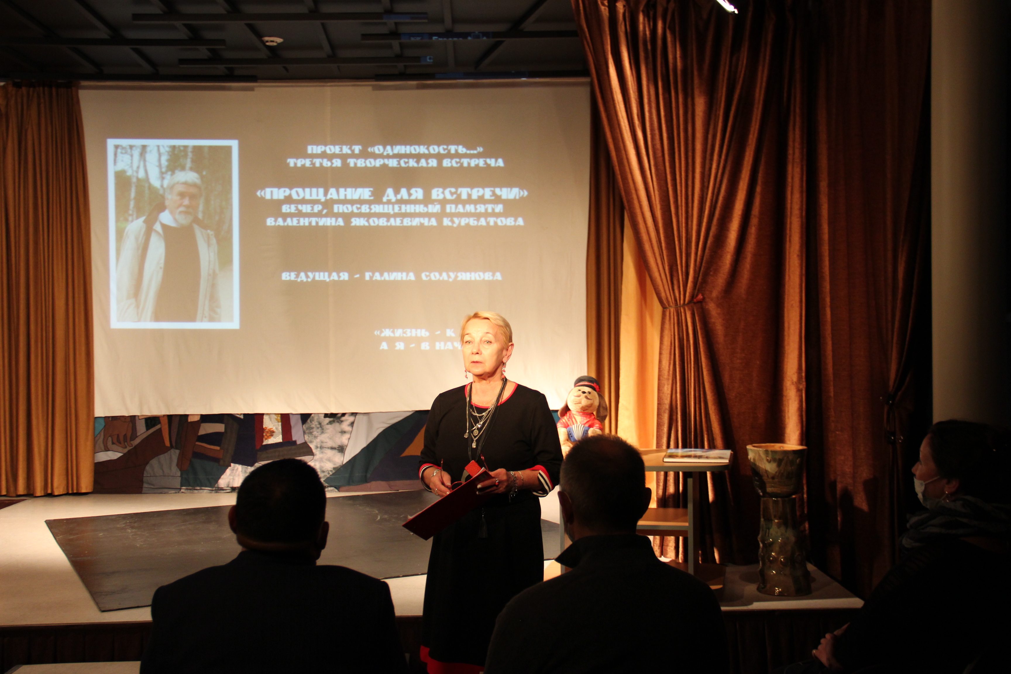 Запускаем новый видеопроект о Вампилове и Центре Статья, посвящённая 85-летию со дня рождения и 50-летию со дня гибели Николая Рубцова О здании Центра – в новом видеовыпуске Вечер поэзии Николая Рубцова 26 февраля Поздравляем Ольгу Михайловну Вампилову С днем рождения Цецена Балакаева! Выставка «Великие юбиляры» открыта Геннадию Михасенко – 85 лет О презентации книги-альбома в Центре А.Вампилова Наше поздравление с 23 февраля Поздравляем Галину Анатольевну Солуянову с 50-летием рабочего стажа! Завтра – театрально-музыкальный вечер поэзии Николая Рубцова Участники фестиваля «Территория. Иркутск» в Центре А.Вампилова Эпизод 7. Студент Вампилов Галина Солуянова о Геннадии Машкине Разговоры с москвичами и петербуржцами о Вампилове Поздравляем Сергея Нориковича! Материал о Читинском семинаре молодых писателей Добрые слова в адрес А.А.Калягина и Г.В.Гусевой-Вампиловой Видео о юбилее Марка Сергеева Эпизод 13. Окружение Александра Вампилова Концерт с фрагментом оперы «Старший сын» Ушла из жизни Людмила Соломеина Интервью с Константином Райкиным Видеомонолог Галины Солуяновой 35 лет без легендарного завлита В Санкт-Петербурге снимут фильм по сценке драматурга Программка вампиловского спектакля 1970 года и современная пьеса Мероприятия, посвящённые юбилею В.П.Гуркина Выступление Ю.М. Брюхановой об инсценировке В.П.Гуркина Интервью с режиссером Андреем Шляпиным Театральные события к юбилею писателя Сотрудник Центра побывал на могиле А.Вампилова Приглашаем школы на экскурсии, встречи и спектакли Онлайн-фестиваль спектаклей по Вампилову Интервью с Виктором Сухоруковым О фильме «Отпуск в сентябре» в монографии А.Федорова 55 лет со дня первого спектакля по Вампилову Открытие выставки и мини-экскурсия в пятницу Пополнение библиотеки Центра Новый объект в гостиной Кутуликчане выступят на открытии выставки Очерк о 200 лет со дня рождения Н.А.Некрасова Приглашаем поболеть за любимое учреждение культуры!