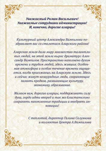 Интервью с организатором фестиваля Приглашаем на события к 100-летию Дмитрия Сергеева Новое исследование Руслана Сулейманова Открыта выставка Валерия Орсоева «Восточка» о вечере памяти Дмитрия Сергеева Впервые в Ненецком округе Поздравляем Ольгу Вампилову! В видеопроекте «Помним. Счастливы…» В видеопроекте Материал в Видеопроект «Помним. Счастливы...» В эфире программы «Фактор здравого смысла» IX Международный Литературно-драматический Новый проект по «Пушкинской карте» Запись выступления Екатерины Фалалеевой и Максима Максимова Директор Пушкинского Заповедника Георгий Василевич поздравляет Галину Солуянову! Работа Галины Солуяновой отмечена губернатором В выпуске «Культурной программы» Интервью в «РГ» «Культурная программа» о подготовке оперы «Старший сын» Видеопроект «Помним. Счастливы…» Посвящен Вампилову и Распутину В сюжете медиастудии «СОК» Первого исполнителя Бусыгина Вручена Владимиру Орехову