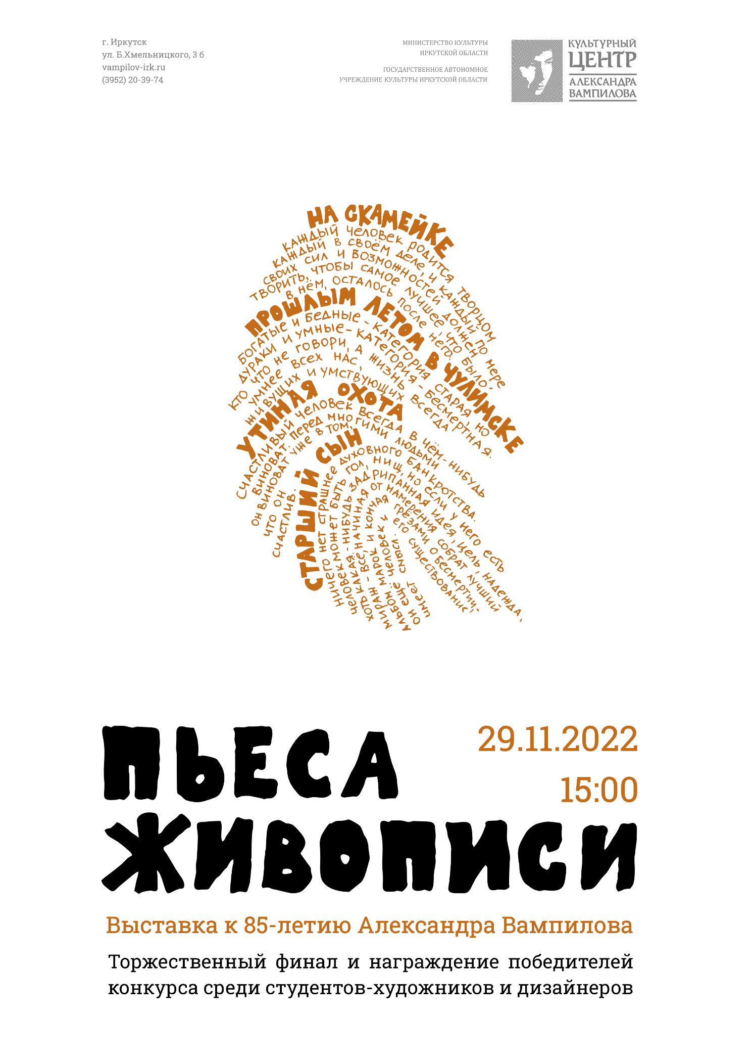 ЕЖЕДНЕВНО ПО БУДНЯМ с 10 до 16.00 экскурсии в Центре А. Вампилова и «Слово о Вампилове»