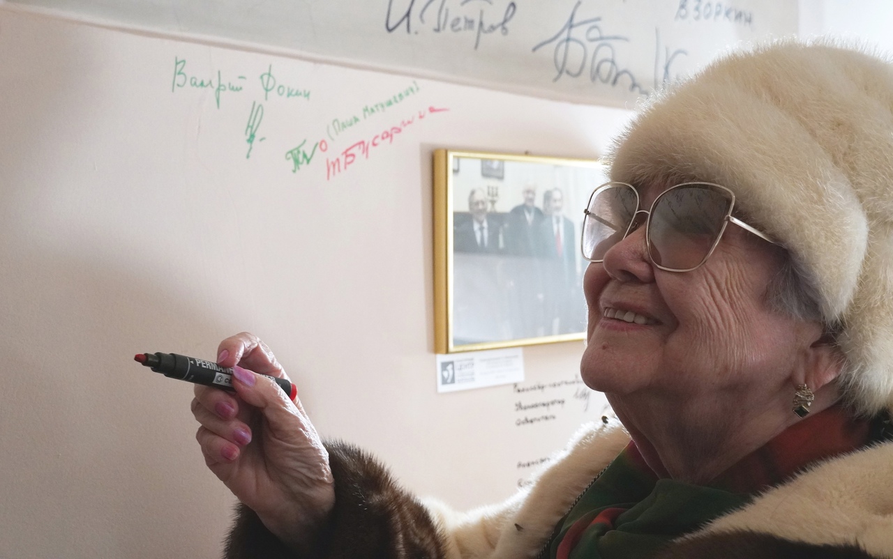 Тамара Георгиевна оставила автограф на Стене признательности Центра, чем пополнила коллекцию подписей людей, близко знавших и друживших с Александром Вампиловым.